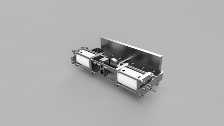 For the water pump project, we designed a double acting, double piston water pump. This design features a scotch yoke to translate rotational motion to linear.